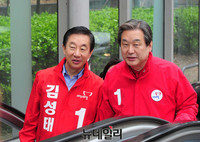 '오른팔' 김성태 만난 김무성, 선거유세도 다정하게