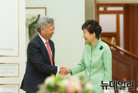 박근혜 대통령은 9일 "북한이 핵(核)을 포기할 경우 국제사회와 함께 동북아개발은행 설립을 추진하겠다"고 말했다. 박 대통령은 이날 오후 청와대에서 진리췬(金立群) 초대 아시아인프라투자은행(AIIB) 총재 지명자를 접견하고 "북한을 개혁·개방으로 이끄는 것이 아시아