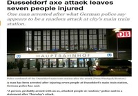 독일 뒤셀도르프의 한 기차역에서 묻지마 도끼 공격 사건이 발생해 시민 7명이 다쳤다.英‘BBC’, ‘텔레그래프’ 등 외신들은 9일(현지시간) 오후 9시쯤 독일 서부 뒤셀도르프 중앙역에서 정신이상자로 추정되는 용의자에 의한 도끼 공격 사건이 발생했다면서 이 같이 보도했다
