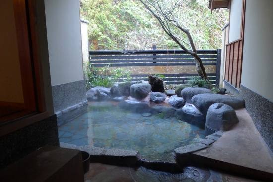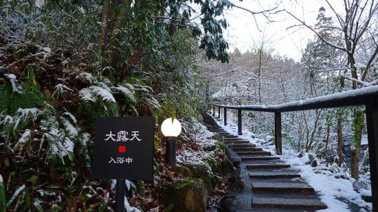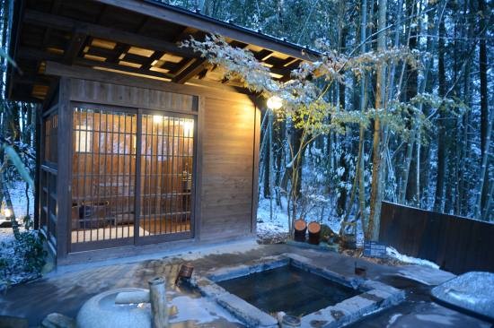 노천탕이 2개 있고 나머지 6개는 반(半)노천 가족탕이다. 독탕이 딸린 객실도 몇 개 있지만 대부분 노천탕을 먼저 찾는다. 누군가 먼저 들어가면서 ‘입욕중’이라고 팻말을 돌려놓으면 아무도 들어갈 수 없는 게 규칙이다. 대노천탕은 십여명도 들어갈 수 있지만 다른 탕들은 2~3명이 들어갈 만한 규모다. 탕마다 탈의하고 세면할 수 있는 공간과 비품이 있다. 가족탕은 샤워기도 갖췄다.