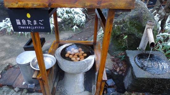 큰 탕(大露天風呂)도 좋고 작은 탕(竹林風呂)도 좋다. 돌탕(이시부로)도 좋고 목탕(히비키)도 좋다. 큰 탕 30분, 작은 탕 30분. 탕을 옮기다 길가 온천우물에 담긴 삶은 달걀로 배를 채운다. 온센다마고(온천달걀), 유황 때문에 몸에 좋다는 이 계란 꼭 먹어보고 싶었다. 여주인은 단풍 든 가을과 새순 돋는 봄이 최고라 했지만 눈 맞은 겨울산만 하랴. 청명한 하늘과 눈 내린 침엽수가 뿜어내는 피톤치드를 한껏 마시며 두런두런 수다를 떨다보면 어느 새 이마에 땀이 맺히고 온 몸의 피가 살아서 돌아다닌다. 바람소리, 새소리 말고는 아무 것도 들리지 않는다. 이게 휴가다.