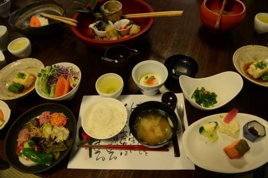 료칸에서는 전통적인 일본 요리를 기조로 하면서 각 고장의 교도 요리나 퓨전화된 일본 요리를 가미해 각자의 개성으로 가이세키 요리를 제공하고 있다.