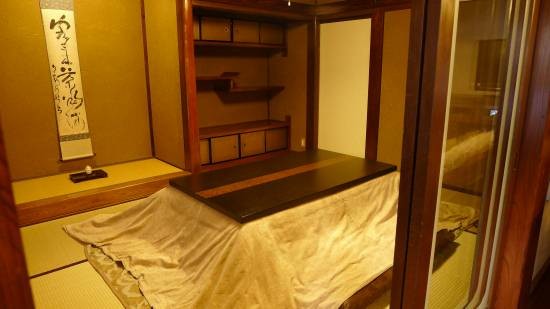 ▲ 우리의 화롯불에 해당하는 고다쯔. 온천수로 방바닥을 데워놓아 차를 마시며 오손도손 수다떨기에 놓다.