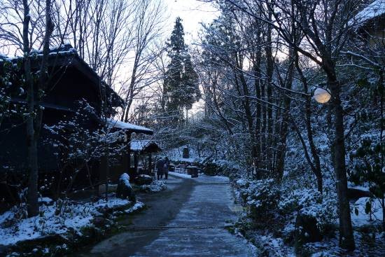 유후인 역 인근 유노츠보 거리는 관광객을 위해 지은 동화속 마을처럼 예쁘다. 작은 기념품 가게, 과자-케익 등 먹거리 숍들과 카페들이 카메라 앵글 속으로 쏙쏙 들어온다. 모처럼 눈까지 내려 관광객들이 신났다.