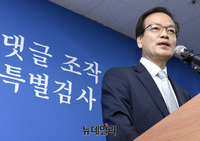 허익범 '드루킹 댓글 조작 사건' 진상규명을 위한 특별검사가 27일 오후 서울 서초구 특별검사 사무실에서 열린 브리핑에 참석해 발언하고 있다.특검팀은 지난해 5월 대선기간 중 드루킹 일당의 댓글·여론 조작과 김경수 경남지사 당선인의 연루 의혹을 수사한다. 허익범 특검을