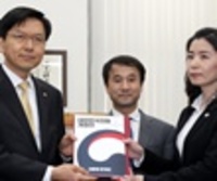 김외숙 법제처장과 한병도 청와대 정무수석이 26일 오후 국회 입법차장실을 방문해 문재인 대통령 명의의 대한민국헌법 개정안을 접수하고 있다.