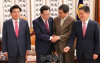 정의화 국회의장과 3당 원내대표가 총선 후 처음으로 국회에서 만났다.18일 정의화 국회의장은 새누리당 원유철 원내대표, 더불어민주당 이종걸 원내대표, 국민의당 주승용 원내대표와 두 달 남은 19대 국회에 관한 이야기를 나눴다.이날 각 당 원내대표의 표정은 20대 총선