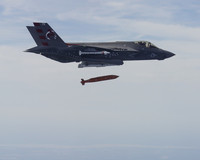 록히드마틴의 'F-35C 라이트닝 II'가 23일 대서양 공중사격 시험장에서 첫 AGM-154 합동 장거리 무기(Joint Standoff Weapon, 이하JSOW) 발사에 성공했다. JSOW는 중거리 전천후 원격 공격무기로, 전투기가 적의 방공망 위협범위 밖에서 효