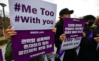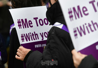 류근혜 한국여성연극협회 회장을 비롯한 관계자들이 세계여성의날인 8일 정오 서울 종로구 대학로 마로니에공원 좋은공연안내센터 앞에서 연극계 성폭력 사태를 규탄하는 기자회견을 갖고, '미투'(#Me Too·나도 말한다) 운동을 지지하기 위한 가두행진을 진행했다. 이