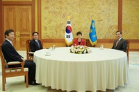 박근혜 대통령은 21일 한일중(韓日中) 외교장관회의를 위해 방한한 기시다 후미오(岸田 文雄) 일본 외무대신, 왕이(王毅) 중국 외교부장과 만나 동북아 지역의 신뢰 구축을 강조했다.청와대에 따르면, 이날 박 대통령은 기시다 일본 외무대신에게 "광복 70주년과 국교정상화