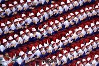 북한응원단이 15일 오후 강원도 강릉하키센터에서 열린 남자 아이스하키 조별리그 1차전 체코와의 경기에서 한국 대표팀을 응원하고 있다. (사진=2018평창사진공동취재단)