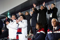 문재인 대통령 내외, 마이크 펜스 미국 부통령 내외, 북한 김여정, 김영남이 9일 오후 강원 평창올림픽플라자에서 열린 평창동계올림픽 개회식에서 참석해 자리하고 있다. (사진=청와대)