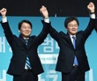 [포토] 손들어 인사하는 박주선-유승민-인철수-김동철
