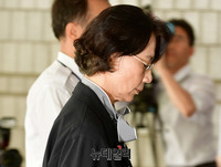 조양호 한진그룹 회장의 아내 이명희 씨가 20일 오전 영장 실질 심사를 받기 위해 서울중앙지법으로 출석하고 있다. 이 씨는 외국인 가사도우미 불법 고용 혐의를 받고 있다. 이명희 씨는 지난 4일 특수상해 등 7가지 혐의로 구속영장이 청구 됐지만 불구속 된 바