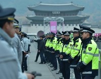 도널드 트럼프 미국 대통령이 방한 찬반집회로 경찰의 갑호비상령이 내려진 7일 오후 서울 종로구 광화문 광장에서 경찰들이 경비 근무를 서고 있다.