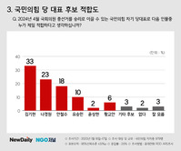 [뉴데일리 여론조사] 국민의힘 당대표 적합도… 김기현 33%, 나경원 23%, 안철수 18%