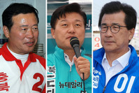 충북지사 박경국 자유한국당 후보, 신용한 바른미래당 후보, 이시종 더불어민주당 후보(왼쪽부터)가 선거 마지막 주말인 8일 청주 지역을 돌면서 집중유세를 펼쳤다.이날 이시종 후보는 분평사거리에서 거리인사를 시작으로 청주 일대 전통시장, 성안길 등을 방문해 거리유세를 펼쳤