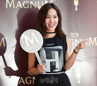 배우 김희정이 15일 오후 서울 서초구 신논현역 인근에 위치한 매그넘 플레져 스토어에서 열린 기념행사에 참석해 포토타임을 갖고 있다. 이번 행사는 매그넘의 국내 첫 플래그십 스토어인 '매그넘 플레져 스토어 'MAGNUM Pleasure Store)'의 오픈을