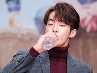 모델 남주혁이 15일 오후 서울 상암MBC에서 열린 '역도요정 김복주' 제작 발표회에서 "물이 공기보다 편한 수영 천재 정준형 역을 맡았다"고 소개하고 있다.이날 행사에는 연출 오현종, 양희승 작가, 출연배우 이성경, 남주혁, 경수진, 이재윤 등이 참석했다. '역도요정