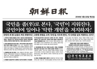 청와대가 20일부터 22일까지 사흘에 걸쳐 △기본권 주체 확대 △토지공개념 명시 △4년 연임제 등을 골자로 하는 '대통령 개헌안'을 발표한 가운데, 우파(右派) 시민단체 국민행동본부가 개헌안에 대한 비판적 의견을 담은 광고를 조선일보에 게재했다.국민행동본부(본부장 서정
