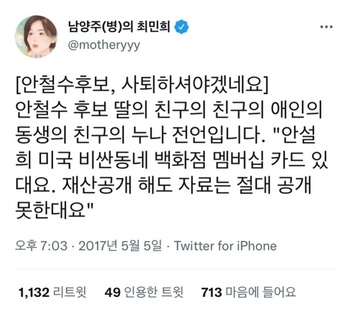 더불어민주당 소속 최민희 국회 과학기술정보방송통신위원장이 국정감사 기간 중 딸의 결혼식을 치르고 피감기관으로부터 축의금을 받아 거취 논란이 나오는 가운데, 정작 최 위원장은 과거 안철수 의원 딸 친구의 친구의 누나의 말을 빌려 안 의원에게 사퇴를 거론했던 점이 회자되고