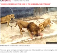 자살하겠다며 사자 우리 뛰어든 20대男 생명 건져