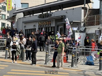 서울 종로구 재동. 헌법재판소 인근에 위치한 지하철 3호선 안국역 2번 출구 앞에 다다르자 태극기를 흔들며 '탄핵기각'과 '사기탄핵 원천무효'를 외치는 시민들이 보였다. 3월24일 아침 9시 한덕수 국무총리에 대한 헌재의 탄핵심판 선고 1시간 전. 햇살이 내리쬐는 따뜻