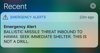 “지금 하와이로 탄도미사일이 날아오고 있습니다. 즉시 대피소를 찾으세요. 이것은 훈련이 아닙니다.”지난 13일 오전 8시 7분(현지시간) 美하와이州에서는 긴급 경보 메시지가 주민과 관광객들의 휴대전화로 전송돼 한때 큰 혼란이 일어났다고 ‘워싱턴 포스트’ 등 美주요 언론