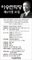 이승만학당이 오는 27일까지 제 4기 수강생 80명을 모집한다.이승만학당은 이승만 건국 대통령의 자유민주 이념과 독립운동 업적, 건국 원훈(元勳)을 널리 보급해 대한민국 선진화와 자유통일을 앞당긴다는 취지로 2016년 9월 설립된 교육기관이다.강의는 첫 개강일인 내년