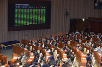 '드루킹의 인터넷상 불법 댓글조작 사건과 관련된 진상 규명을 위한 특별검사의 임명 등에 관한 법률안'(드루킹 특검법)이 21일 오전 국회에서 열린 본회의를 통과되고 있다.