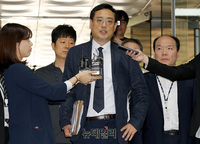 변희재 미디어워치 대표고문이 29일 오전 서울중앙지방법원에서 열린 영장실질심사에 출석하고 있다.변 고문은 JTBC가 입수한 최순실 씨 태블릿 PC와 관련해 손석희 JTBC 사장 등의 명예를 훼손한 혐의를 받고 있다.