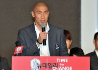 2015 AFC 호주 아시안컵에서 준우승을 차지한 대한민국 축구대표팀 차두리 선수가 1일 오후 인천국제공항에서 열린 축하 행사에서 소감을 말하고 있다.…