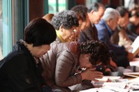 “합격 기원” “수능 대박” “선배님 힘내세요”고등학생들이 대학수학능력시험(수능)을 치르는 선배들을 응원하기 위해 구름처럼 모였다. 배문고, 성동고, 장충고 등 학교별 응원단(70여명)이 새벽부터 나와 북과 장구를 두들기고 손팻말을 흔들었다. “시험 잘 보세요” 우렁찬