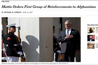 제임스 매티스 美국방장관이 아프가니스탄 추가 파병을 위한 명령에 서명했다.美‘뉴욕타임스(NYT)’, 英‘로이터’ 등에 따르면 제임스 매티스 美국방장관은 8월 31일(현지시간) 美국방부 청사에서 기자들과 만나 “추가로 아프가니스탄에 파병될 미군은 아프간 정부군이 탈레반과