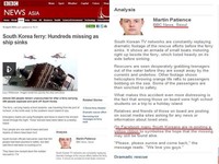 전남 진도에서 침몰한 세월호 참사에 대해 CNN과 BBC 등 해외 주요 언론들도 큰 관심을 갖고 신속히 보도하고 있다. 16일(현지시간) 미국의 CNN은 세월호 생존자들이 사건 당시 지인과 주고받은 문자메시지 내용과 수학여행을 떠나다 사고를 당한 단원고교 학생들이 가