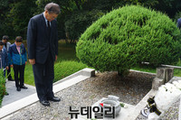 추미애 대표를 비롯한 더불어민주당 지도부가 31일 오후 경남 김해시 봉하마을을 찾아 노무현 전 대통령 묘역을 참배하고 있다. ⓒ뉴시스 추미애 더불어민주당 대표는 31일 노무현 전 대통령 묘역이 있는 봉하마을을 찾아 눈물의 참배를 한 뒤 권양숙 여사를 예방했다. 추 대
