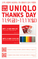 유니클로에서 플래그십 스토어인 명동 중앙점의 1주년을 기념하고, 일 년 동안 유니클로에 보내준 고객들의 사랑에 보답하고자 9일부터 11일까지 감사 축제인 ‘땡스 데이(THANKS DAY)’ 이벤트를 개최한다.유니클로는 명동중앙점 오픈 1주년이자 ‘빼빼로 데이’이