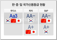 이명박 대통령이 세계 3대 신용평가 기관이 우리나라 신용등급을 일제히 올린 것을 두고 명실상부한 선진국 대열 진입을 기대했다.우리나라는 지난달 27일 세계3대 신용평가 기관인 무디스로부터 ‘A1’에서 ‘Aa3’로 오른 것에 이어 지난 6일 피치로부터는 ‘A+’에서 ‘A