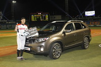 기아자동차가 지난 21일 대전 한밭야구장에서 열린 프로야구 별들의 잔치에서 다양한 마케팅 활동을 펼쳤다. 이날 기아차는 ‘2012 프로야구 올스타전’에서 최고의 활약을 펼친 ‘미스터 올스타’ 황재균 선수(롯데 자이언트)에게 ‘뉴 쏘렌토R’을 부상으로 제공했다.야구장을