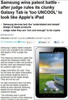 영국 법원은 삼성전자가 갤럭시탭의 디자인이 애플의 특허를 침해하지 않았다고 제기한 '특허 비침해소송'에서 "갤럭시탭은 애플의 디자인을 모방하지 않았다"며 삼성의 손을 들어줬다.영국 특허법원의 콜린 버스 판사는 지난 9일 판결에서 "삼성 제품은 애플의 디자인처럼 극단적인