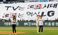 LG전자가 지난 11일 잠실야구장에서 열린 삼성과의 경기에서 지난해에 이어 다시 한 번 초대형 이색 응원전을 펼쳤다.이날 경기장에는 LG전자 한국마케팅본부 1,200여명의 임직원들이 ‘시스템에어컨 전모델 에너지 1등급 LG 휘센 뿐!’·‘TV는 3D시대, 3D는 역시