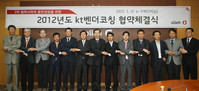 KT 10일 KT분당사옥에서 50개 1, 2차 협력사 대표 및 임원 등이 참석한 사운데 ‘2012년 벤더코칭 협정식’을 맺었다고 밝혔다.벤더코칭은 KT와 1, 2차 협력사가 협력체계를 구축한 삼각 공조 동반성장 프로그램이다.1차 협력사가 2차 협력사에 대한 품질향상 노