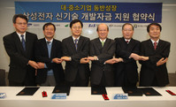 삼성전자는 25일 '신기술 개발 공모제' 지원사업 협약식을 가졌다. 이 자리에는 상생협력센터 최병석 부사장과 대·중소기업협력재단 정영태 사무총장, 4개 협력사 대표가 참석했다. '신기술 개발 공모제'란 기술과 아이디어는 있으나 개발자금이 부족한 기업에게 자금을 지원하고