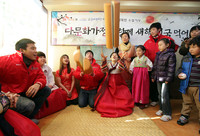 SK텔레콤(대표이사 사장 하성민, www.sktelecom.com)이 18일 설을 맞아 다문화가정 결혼이민자 및 아동 100명을 인천 다문화 레스토랑으로 초청해 떡국을 대접하고 윷놀이를 함께 하는 행사를 가졌다.