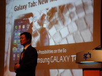 삼성전자는 지난 26일 막을 내린 싱가포르에서 열린 세계신문협회 주최의 '디지털 미디어 아시아 2010 컨퍼런스'에 참석해 아시아 지역 주요매체 언론인들을 대상으로 '갤럭시탭' 관련 주제 발표를 했다.