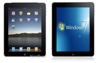 어느 쪽이 진짜 아이패드일까. 정답은 쉽다. 아이패드는 마이크로소프트 운영체제(OS)를 지원하지 않는다. 따라서 (사진) 왼쪽이 진짜 아이패드다. 오른쪽 기기는 아이패드 겉모습은 아이패드를 빼닮았지만 기본 운영체제는 애플의 iOS가 아닌 마이크로소프트사(MS)의 윈도