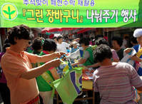 현수막의 대변신! 새마을운동중앙협의회가 한번 쓰고 버리는 현수막을 이용 장바구니를 만들어 추석을 앞두고 시민들에게 나눠준다.협의회는 시민들에게 자원재활용의식을 홍보하고 실제로 넘쳐나는 현수막을 활용하기 위해 15일오후 서울 송파구 마천중앙시장과 경동시장, 중부시장, 양