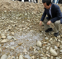 남한강 여주보 공사 현장 인근에서 하이닉스 자체 취수장 보강작업 도중 물고기가 폐사하는 사고가 났다. '4대강 사업 저지를 위한 범국민대책위원회(4대강 범대위)'는 14일 오전 "오전 10시경 남한강 4공구 여주보 공사 현장 인근 약 2㎡ 크기의 웅덩이 2곳에서 피라미