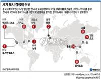 세계에서 가장 경쟁력 있는 도시는 미국의 뉴욕이라는 연구조사 결과가 나왔다. 이와 함께 아시아에서 경쟁력이 가장 높은 도시는 일본의 도쿄(세계 3위)로 나타났으며, 서울은 싱가포르(세계 8위)에 이어 세계 9위로 평가됐다. 중국사회과학원은 14일 발간한 `전 세