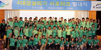 ‘4대강 살리기 대학생 서포터즈’ 54개팀 195명이 오늘 대전 K-water 강당에서 차윤정 4대강추진본부 환경부본부장 등이 참석한 가운데 발대식을 갖고 공식활동에 들어갔다.4대강살리기 추진본부와 K-water는 지난 6월 초부터 20일까지 한강, 낙동강, 금강, 영